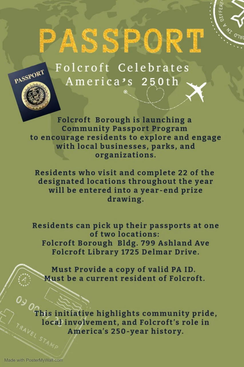 Folcroft Borough is launching a Community Passport Program to encourage residents to explore and engage with local businesses, parks, and organizations.